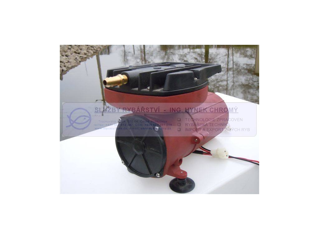 Kompresor je používán hlavně při dopravě živých ryb. Při tlaku 0,01 MPa (cca 1m vod. sloupce) dává 133 litrů/min., do 2m dává 125 litrů/min., do 3m 119 litrů/min. Dodáváme variantu na 12V, nebo na 24V.