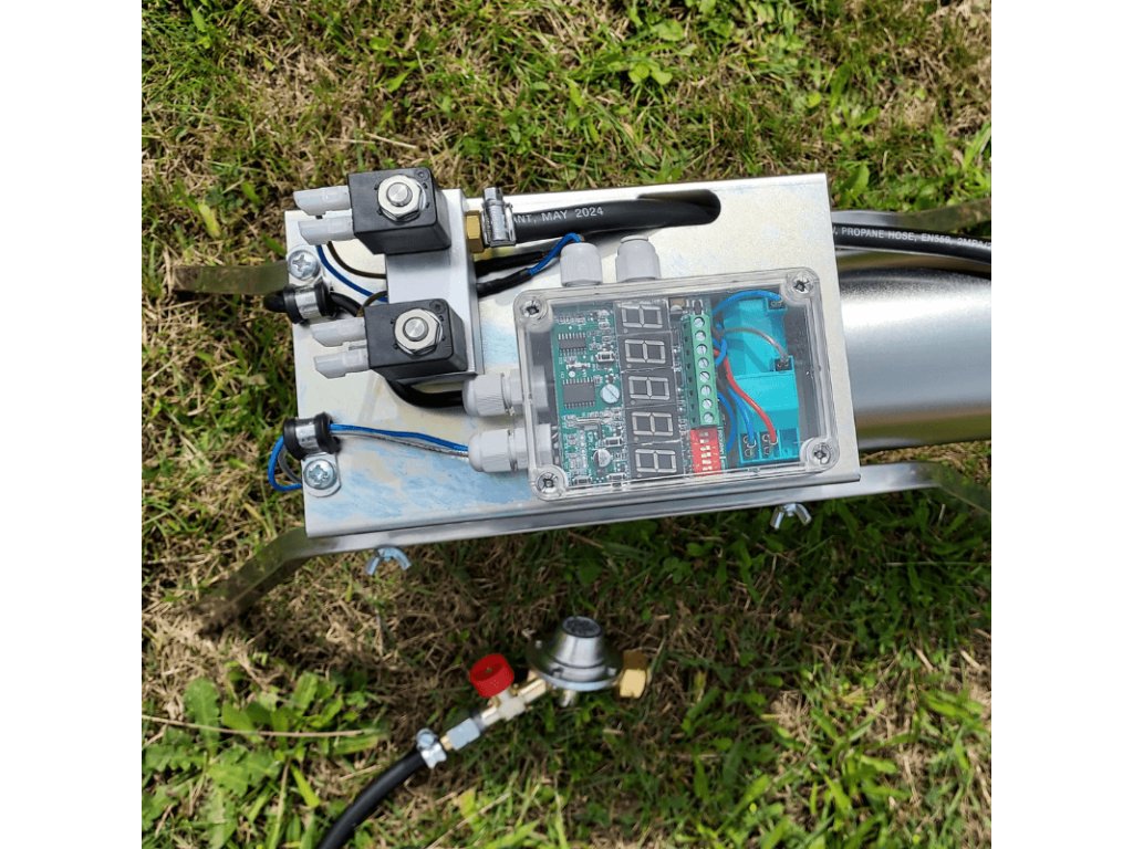 Plynové detonační zařízení se v našem oboru používá pro pro ochranu rybníků před rybožravými ptáky ptáky a zvěří. Tato verze plašiče je již v základu vybavená pokročilou elektronickou jednotkou. Možnosti načasování detonací jsou také oproti verzi Zon Mark 4 větší.Tato verze plašiče je již v základu vybavena pokročilou elektronickou jednotkou a možnosti načasování detonací jsou oproti dřívější verzi Zon Mark 4 větší. Z plašiče byl také odebrán mechanismus s membránou a pružinami. Časovací digitální hodiny vám umožní nastavení automatického pravidelného začátku a ukončení činnosti plašiče. Aby to nebylo málo, ve 24 hodinovém cyklu Vám elektronika umožní až 4 začátky a 4 navazující ukončení. Pro jeden den můžete nastavit 4 periody pomocí času startu a času ukončení. Během periody pracuje plašič dle předvoleného nastavení. Mimo periodu je přístroj neaktivní. Pokud se tedy rozhodnete plašit pouze v určitých úsecích dne (např. 8:00 – 11:00; 13:00 – 15:00 ..) tento plašič vám bude skvěle k ruce. Elektronický EL08 nabízí nastavení intervalu mezi výbuchy v rozmezí od 30 vteřin do 30 minut a také umožňuje vynikající náhodný režim, kdy je interval mezi výbuchy generován nahodile.